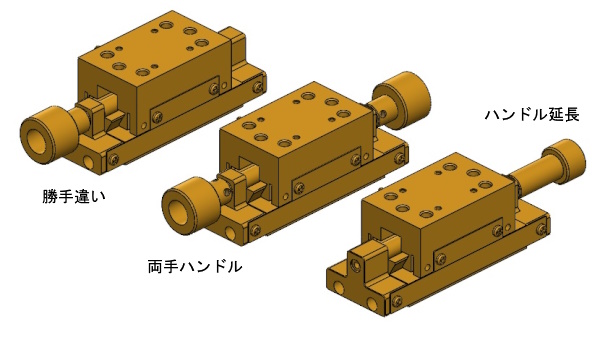 応用のポイント:多機能送りねじステージの特別仕様例です。XTSC-70以外のXTSC-90, XTSC-120, XTSC-150 でも同様の特別仕様が可能です。
