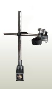 FAスライダーをマグネット式に組み合わせたスタンドです。屈折機構部は180°傾斜・360°回転が可能ですので、作業状況に合わせて鏡筒光学系を任意の角度にセットすることができます。